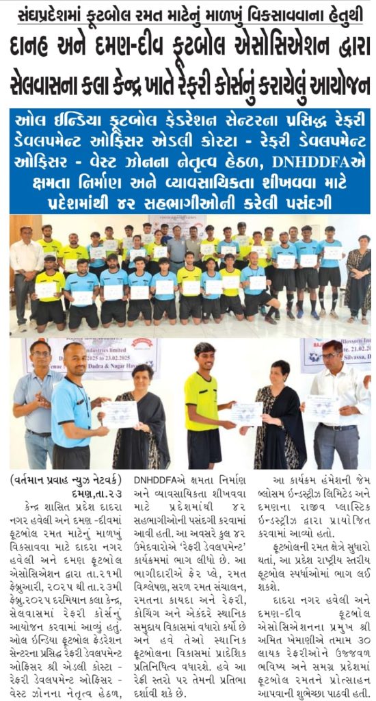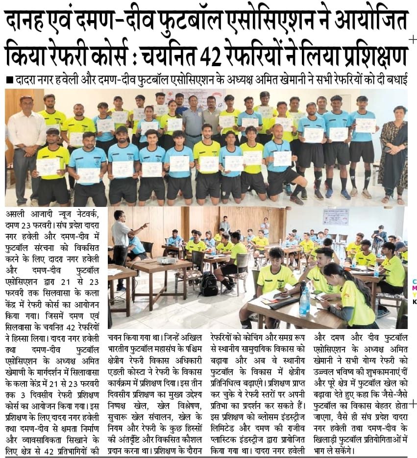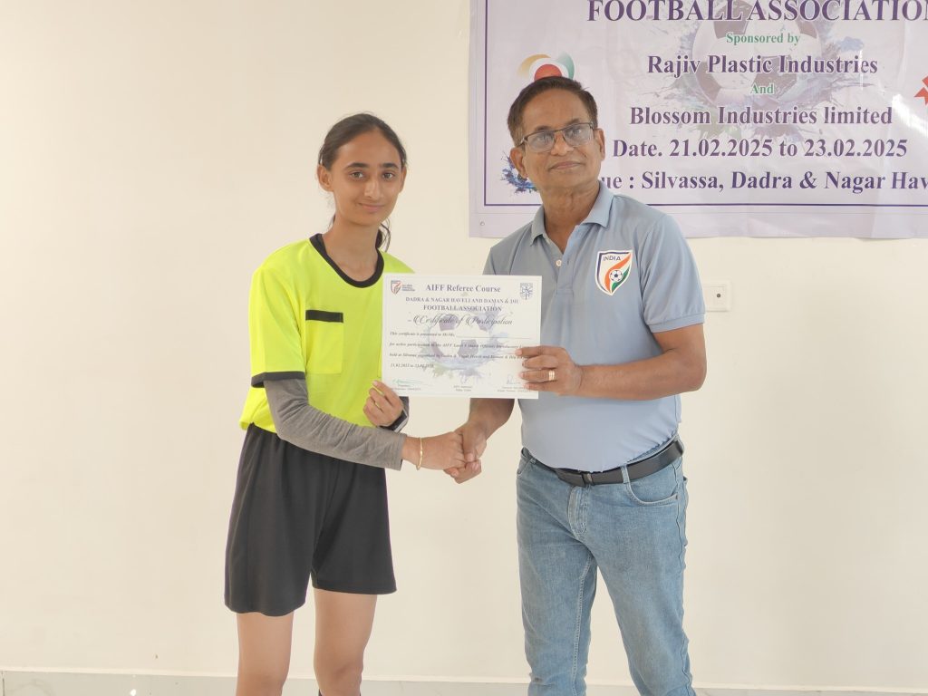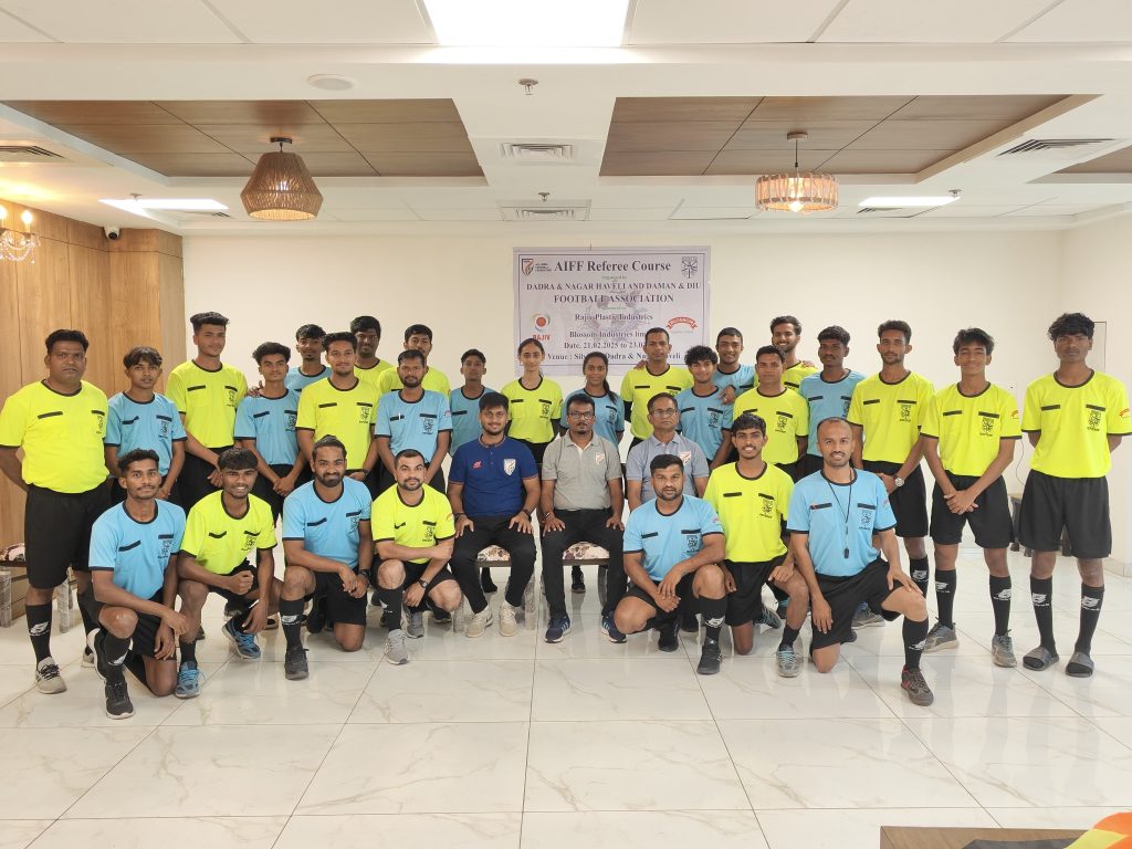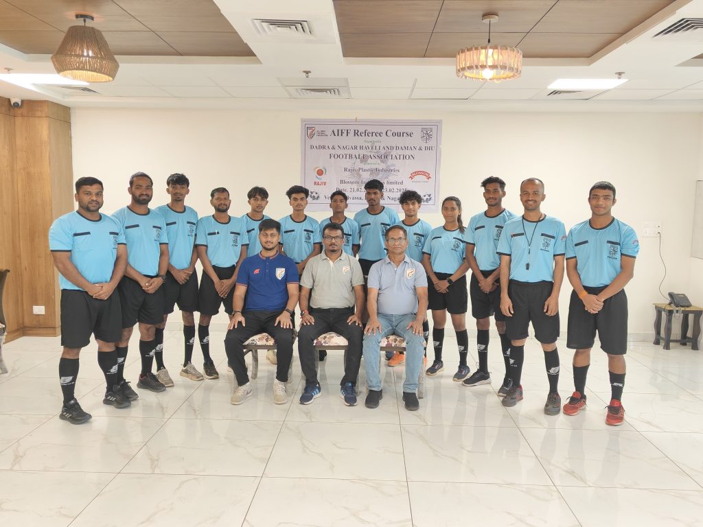 Gallery Aiff Referee Course Selection Trials for under 20 Swami Vivekananda Trophy, National Championship 2025 Held at Silvassa on 30th January 2025 Football for Schools Program Diu Beach Games - 2024 NFC Trials & Kit Distribution - 2023 Daman & Diu Senior Division League 10th Grassroots Football Day Team in Action